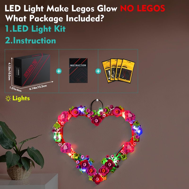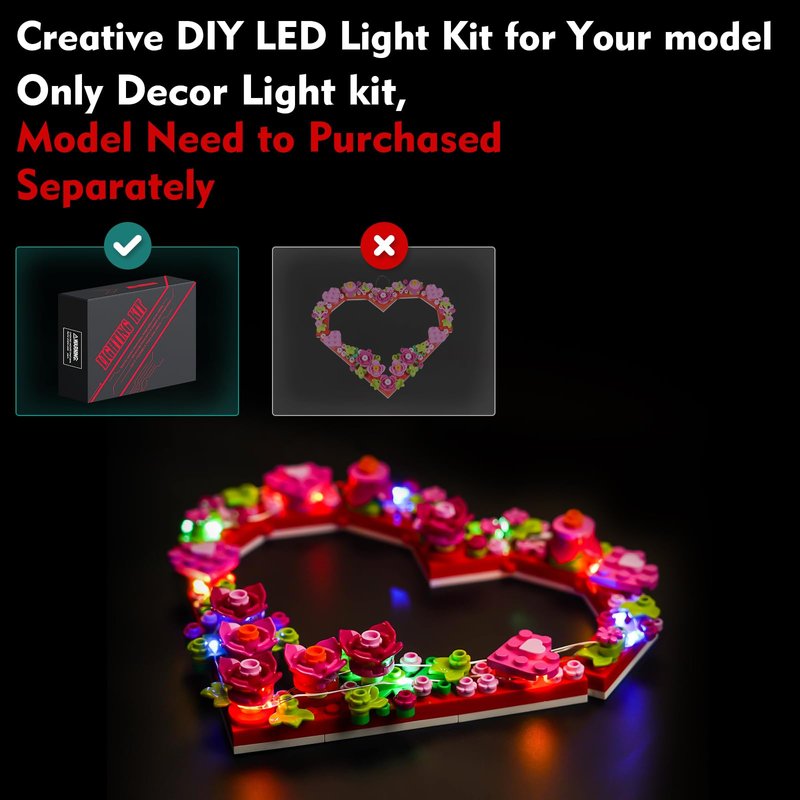 VONADO Light Compatible with lego-heart-ornament-40638 Valentine Flowers Heart Wreath Frame, Lighting Set Compatible with Ornament Heart Legos Set 40638 Gift for Adults (No Models)