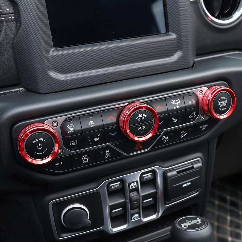 Model: for 2018-2024+ Jeep Wrangler JL JLU 2 Door & Unlimited 4 Door ( Sports, Sahara, Freedom & Rubicon ), for 2018-2021 Jeep Gladiator JT Feature: -Completely changed the interior looks, it slip over the factory plastic and fits perfect. Provides a high class and fashion decor style for your car.change the ordinary interior design and add unique color. It can cover existing scratches and prevent your car from scratch and abrasion. -Made of High Quality Aluminum Alloy -Can be installed directly, no drilling or cutting required, just press the button trim into the air conditioning button. Don't need any other tool, no damage to your Car After sales service - Our all products have 30 days of after-sale protection and 2 years services -If you have any suggestions or questions for our products, please contact us as soon as possible. Package Include: 3 pcs red air conditioning knob, 1pc headlight switch knob