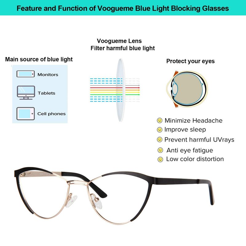 ▶ Voogueme glasses are specially designed to filter out harmful blue light.