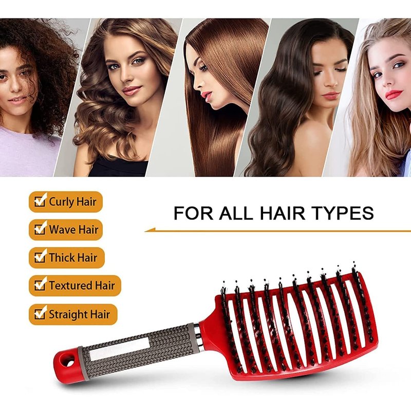 - 4.Vented For Blow Drying: The curved hair brushes for women and men easily work through coarse, fine, thick, or thin hair and the vented detangling brush works great for straight or curly hair. The bristles and nylon pins help detangle every type of hair.