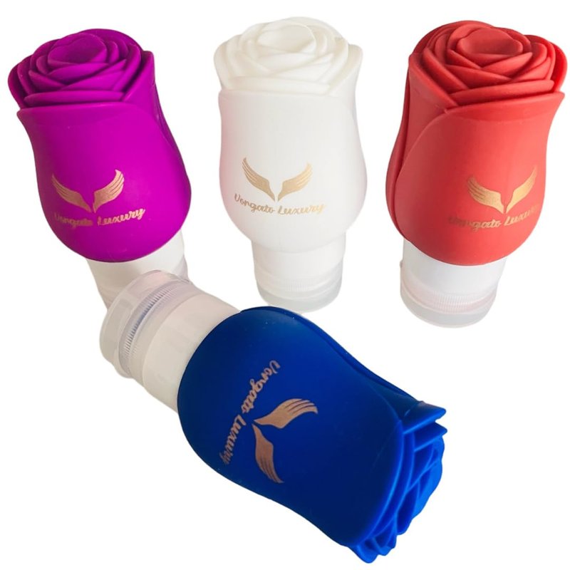 Elegant Design and safe material combined. Set of (4)Four 90 ml or 3oz Elegantly designed as a rose bud with 4 colors, all are empty travel bottles for toiletries ready for re-fill, leakproof travel bottles with tight seal, liquid travel containers are made of food-grade silicone, BPA-free. Multi-Use. These 3oz travel bottles are airline travel essentials. They are airline approved travel bottles and are travel silicone bottles that can serve as a refillable travel shampoo bottle, travel shampoo and conditioner bottles, travel containers for toiletries, squirt bottles for liquids, small squeeze bottles, travel size lotion container, small hand sanitizer travel size silicone bottles , soap container for traveling, sunscreen and other toiletry liquids, gels and tooth paste that is approved for carry-on. Durability and long lasting use. Silicone rose made body that looks elegant is a rare find, reusable travel bottles for toiletries, refillable small bottles for liquids, travel bottles tsa approved making it ideal for any light packing and carry ons. So soft bottles that can easily be squeezed so minimum to no waste of contents. Mini travel bottles ,3oz travel bottles with equivalent capacity of 90ml. Wt- 1.4oz, H- 4.25 inches x 2.3inches Width. User -Friendly. These travel size containers are wide-mouth for easy refilling and cleaning. Great Gift. Collect these roses and gift them to surprise someone who loves elegance and travelling, whether travel for leisure, sports, camping and even just simply going to the gym and so on.
