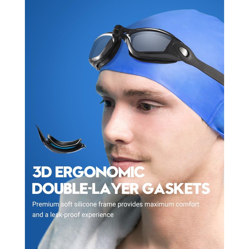 - Comfortable & Leak-proof :3D ergonomic double-layer gasket fits your eye socket without leaving a mark around the eye skin and hurting your eyes, and also avoids water from seeping in. You can swim freely without distractions!