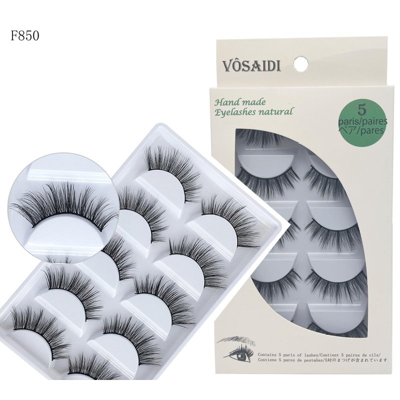 Vôsaidi False Eyelashes, Handmade Luxurious Fake Lashes, Natural Long Black, 5 Pairs with Glue (F850)