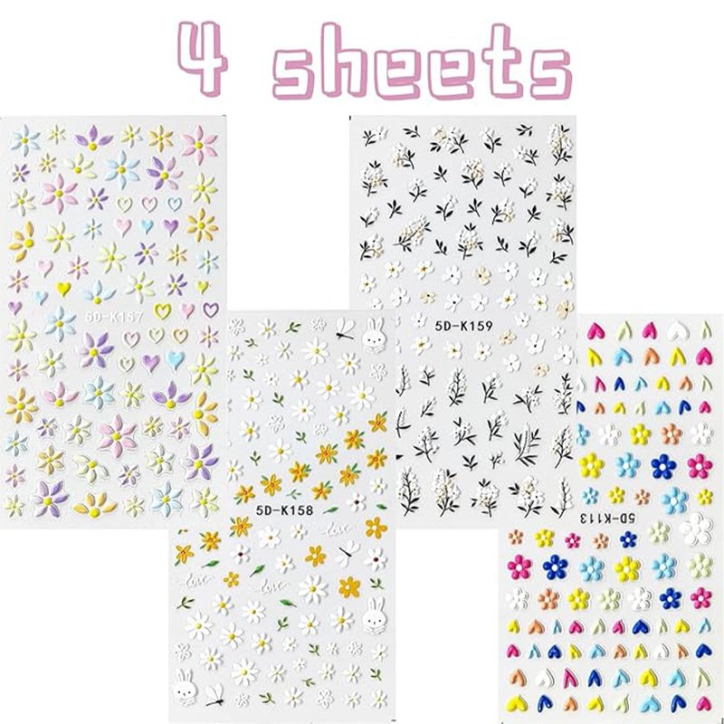 VOTACOS Flower Nail Art Stickers Decals 5D Embossed Nail Decals Spring Summer Daisy Nail Art Design Self-Adhesive Nail Supplies Accessories 3D Flower Nail Stickers for Women Nail DIY Decoration