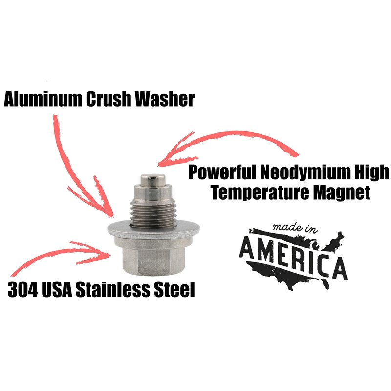 - PREMIUM STAINLESS STEEL – The drain plug market has a plethora of options which are constructed of aluminum. Aluminum is an inferior metal choice due to its strength and commonly shear/snap leaving you with a broken plug stuck in your oil pan. Our goal is to provide plugs of the highest quality standard, that starts with using a metal that will be strong enough to last years. Our steel is sourced from the states, promising not to be a weak recycled material often found in foreign metals.
