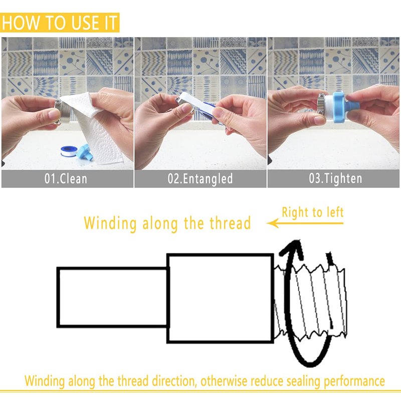 - Teflon tape has a sealing function to prevent the leakage of water or gas.