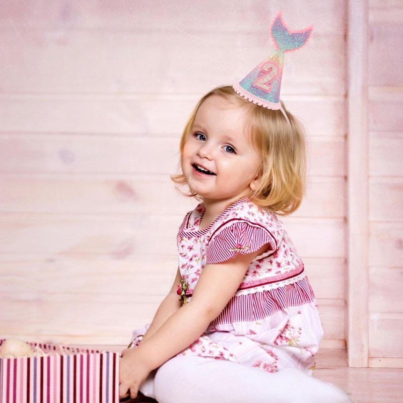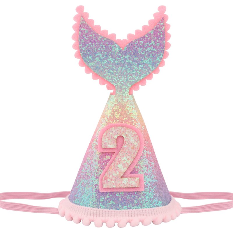 Vovii 2 years old Mermaid Tail Birthday Hat for Baby Girl Pink Sparkle Sequined Mermaid Tail Headband Princess Birthday Party Supplies