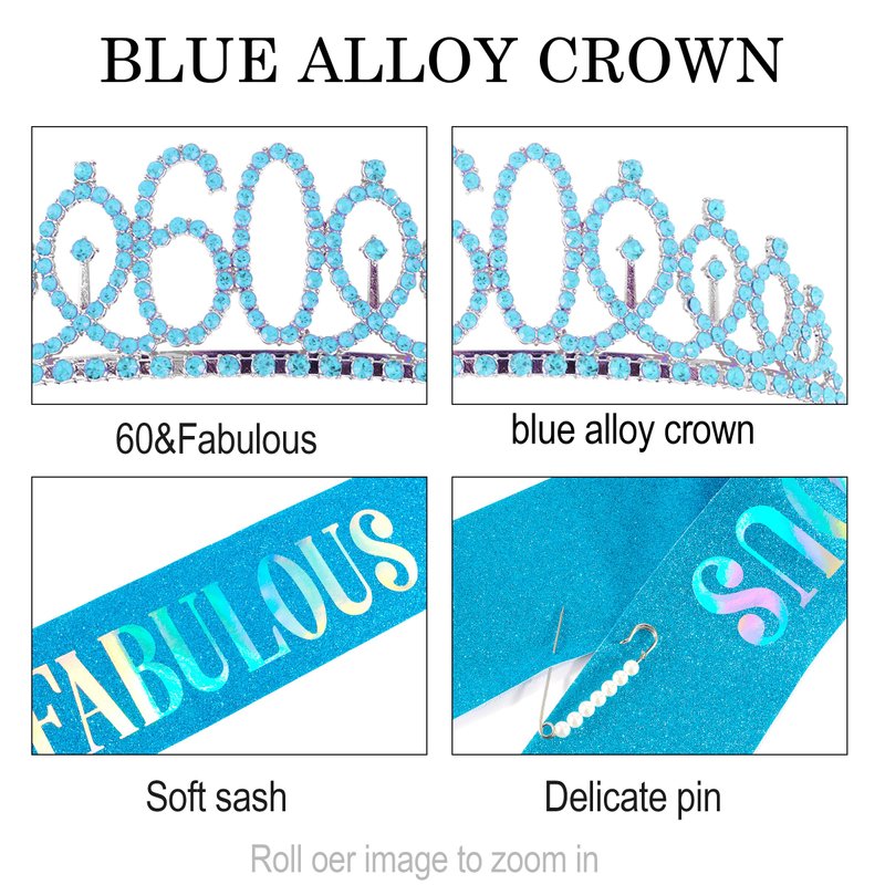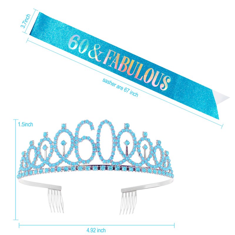 - What You Get: The package includes 60 & Fabulous sash, 60th Birthday Tiara and pearl pin. The 60th birthday sash and tiara set is a delicate birthday gifts for women