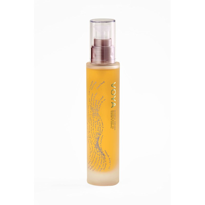 - Enhanced with the finest Evening Primrose and Argan oils and combined with the antioxidant qualities of Himanthalia Elongata, VOYA's award-winning relaxing body oil will deeply nourish and hydrate the driest of skins. Lavender essential oil will de-stress the mind and assist in the prevention of sleepless nights, while rosemary oil will ease mental fatigue and uplift the spirits.