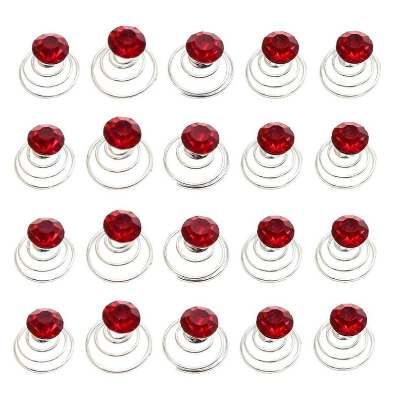 Vpang 20 Pcs Spiral Hair Pins Swirl Hair Twists Coils Hair Clips Wedding Bridal Shiny Rhinestone Crystal Metal Spiral Twist Hairpins Hair Accessories (Red)