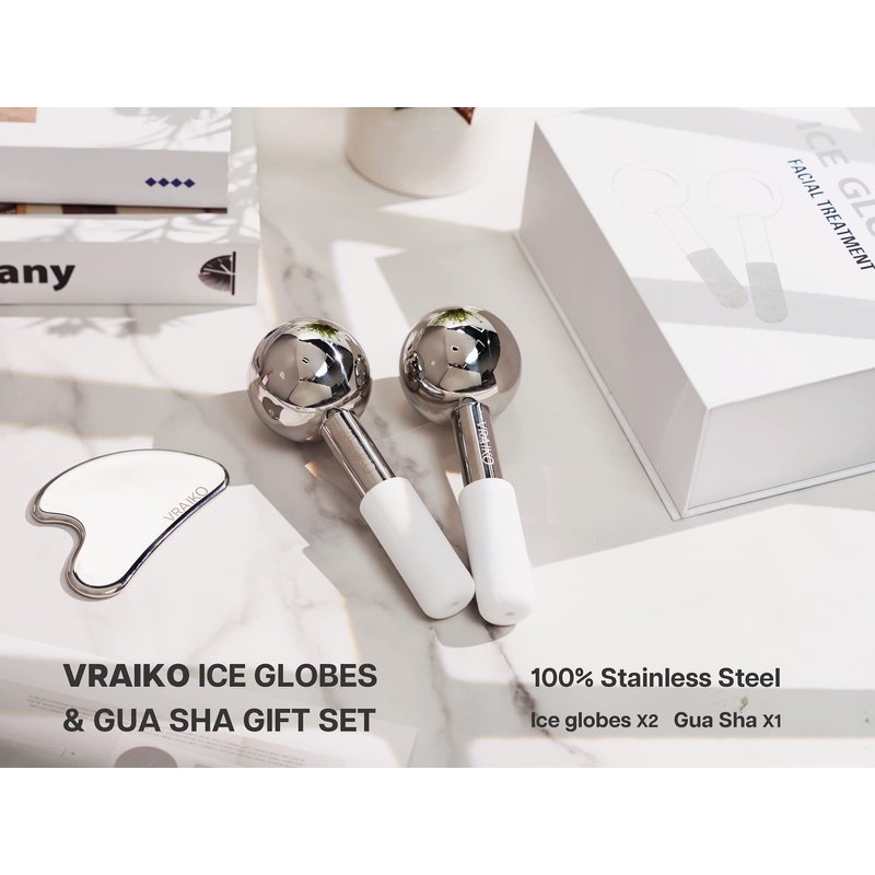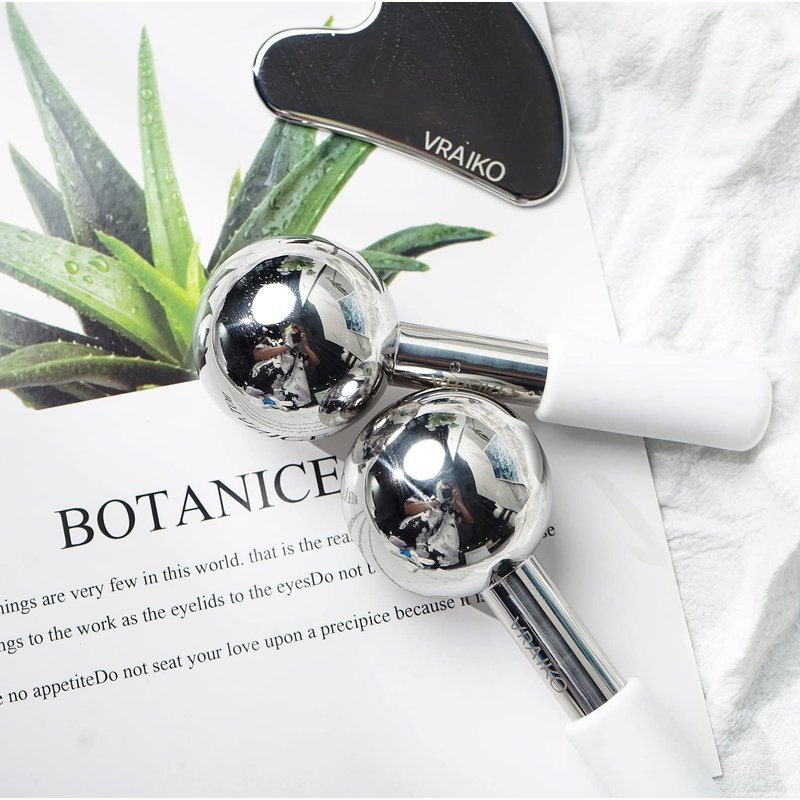 - 【VRAIKO Ice Globes & Gua Sha Value Set】Great Value set contains stainless steel cryo sticks x2 & gua sha x1. Single package provides multiple facial tools for at-home cryo massage, sculpting, contouring or lymphatic massage.
