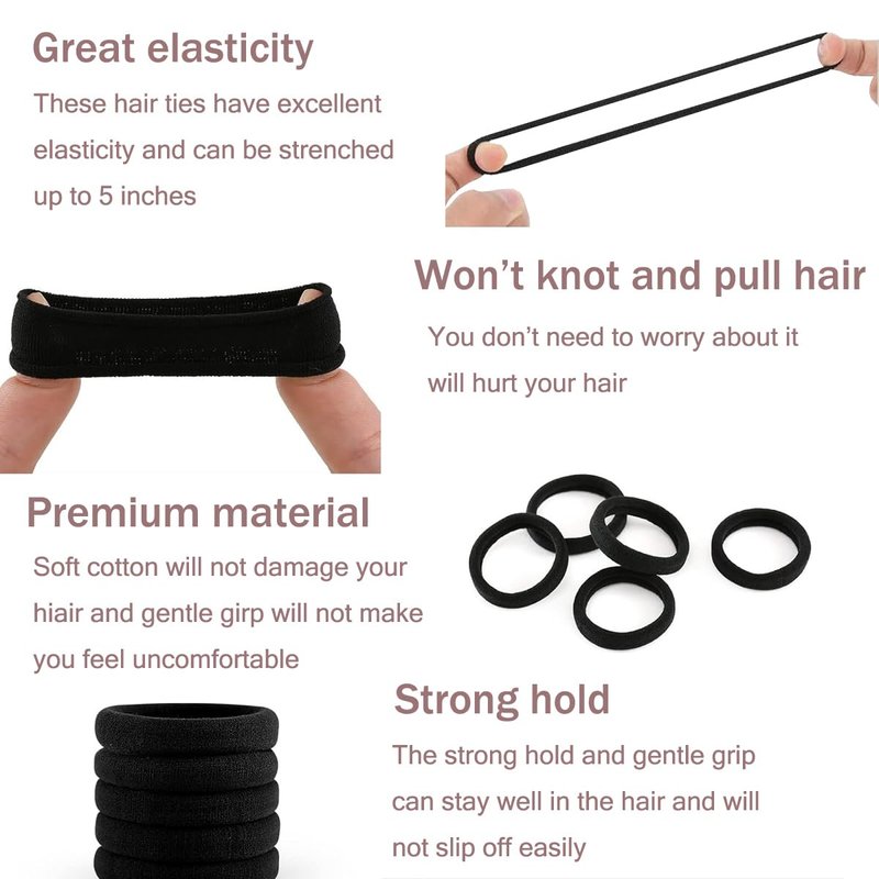 - 【Wide Application】Black can easily match different hair colors and can match all your outfits and hairstyles. 100 black headbands are economical and suitable for long-term use. Ponytail holder suitable for daily use and exercise.