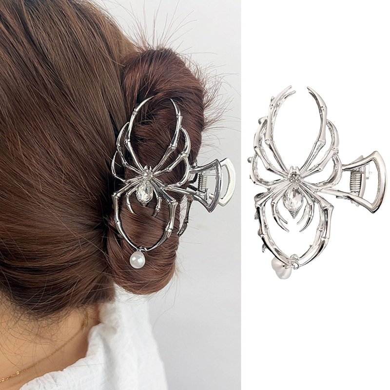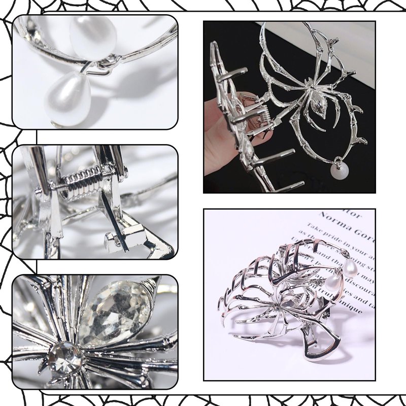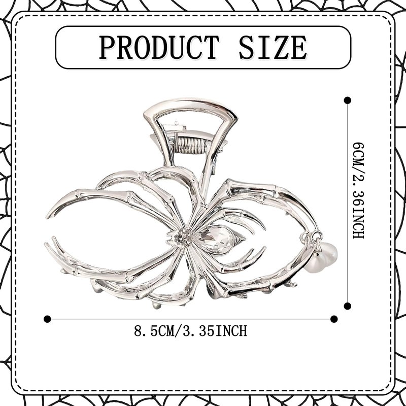 Vsdski Halloween Hair Claw Clips Metal Silver Spider Hair Clips Halloween Hair Accessories for Women Girl Pearl Charm Spider Claw Clips for Thick/Thin Hair Hair Jaw Clips Strong Hold Hair Barrettes