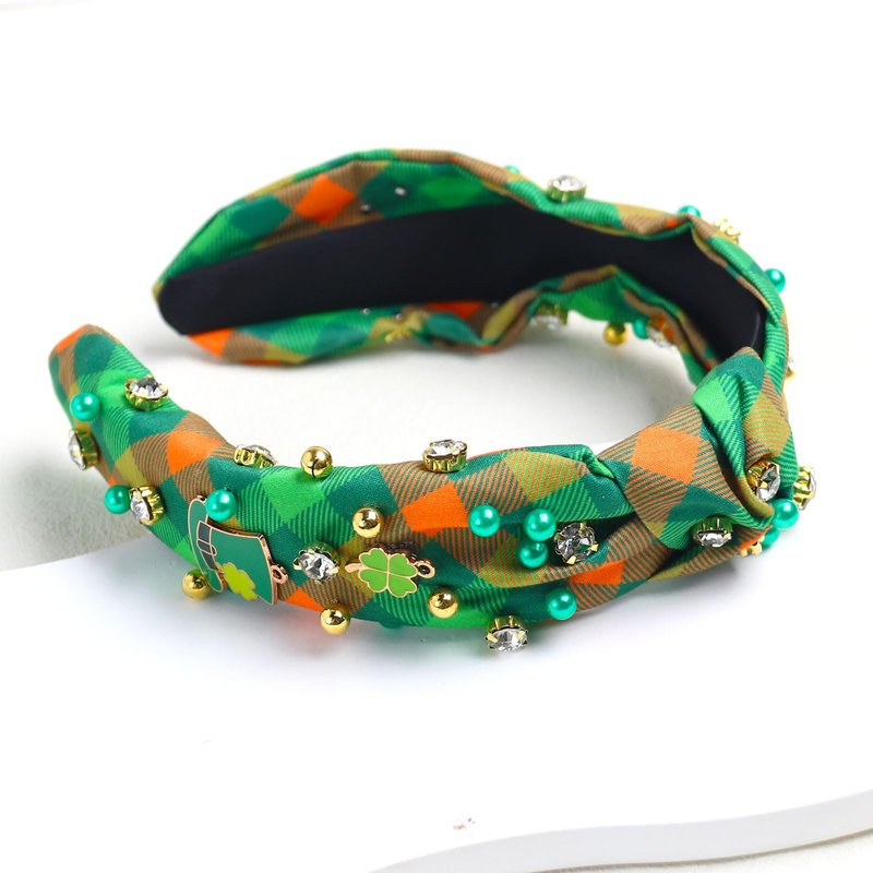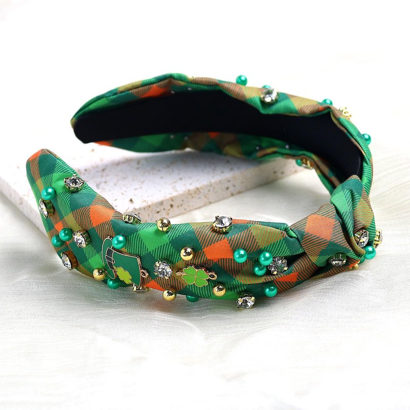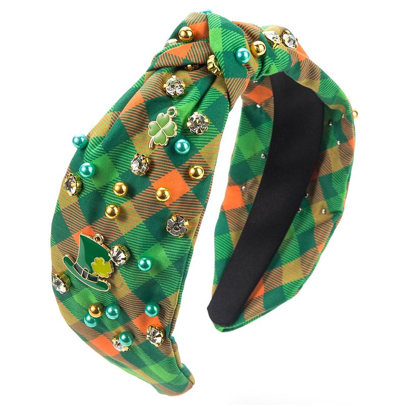 Vsdski St Patricks Day Headband for Women Lucky Shamrock Headband Top Hat Pearl Rhinestone Jeweled Knotted Headband Hair Accessories St.Patrick's Day Hair Accessories Outfits Irish Holiday Gifts