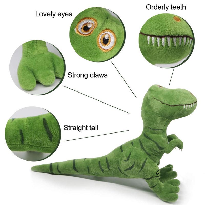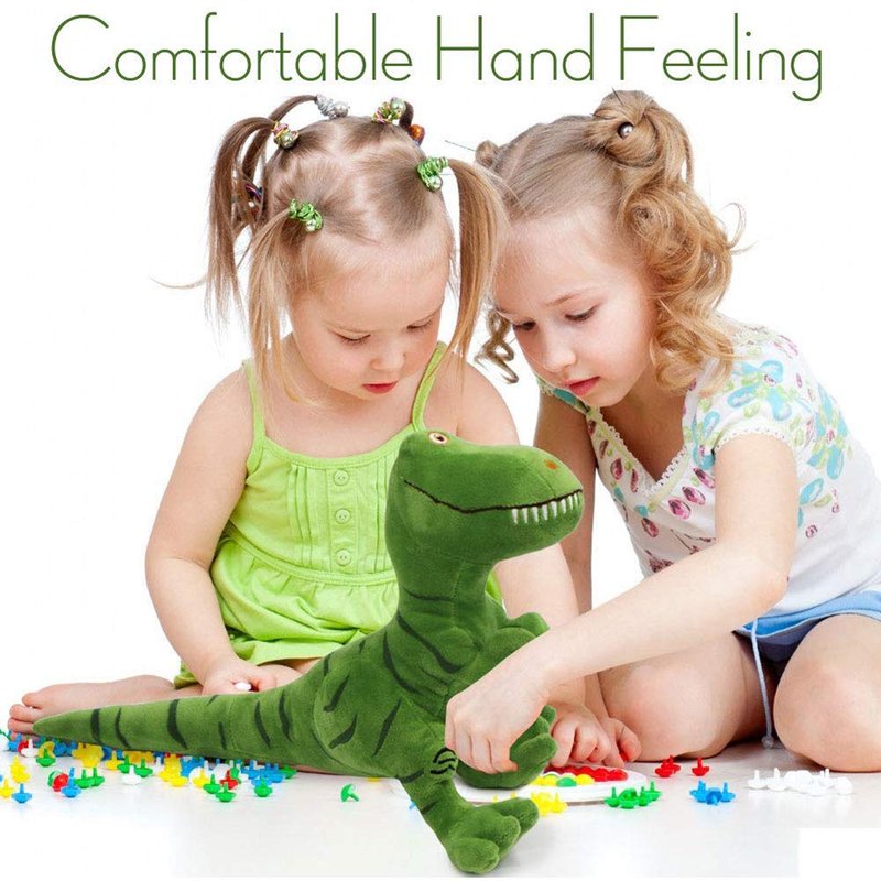 - MATERIAL – This DINOSAUR T-REX plush stuffed animal is securely sewn from the highest quality polyester and acrylic fabrics and filled with white polypropylene plush filling, exclusively all new material, soft and cuddly, could be wash, safe for your kids. All soft toys are good at hugging, comforting and listening and are fond of play and mischief. A great stuffed toy for your children and best gift for DINOSAUR T-REX lovers or plushie lovers.
