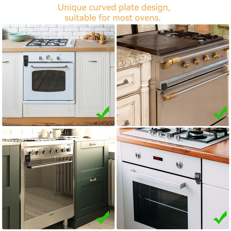 - [Suitable for Most Ovens]: Compared with other oven child locks, our oven baby proofing lock with a unique curved plate design, fits the oven surface better, with no gap or tiny gap, suitable for most ovens in the market. Can easily lock the oven door, reducing the risk of being opened by babies.