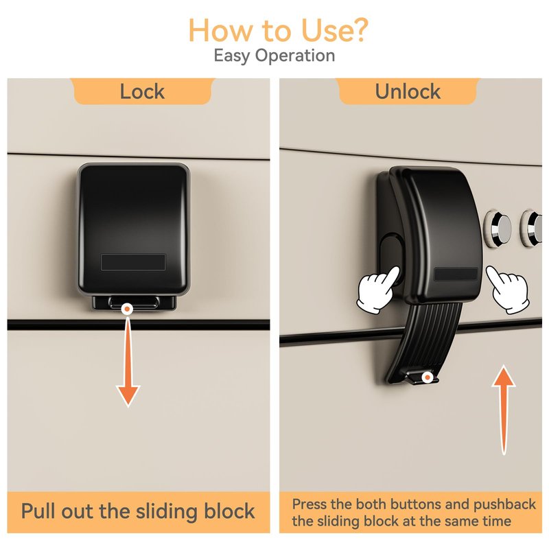 - [Easy to Install & Operate]: Clean the surface of the oven where you want to install the child safety oven lock, tear off the cover of the tape, and paste the lock to the oven surface. (The effect will be better after 72 hours). You just need to pull out the sliding block to lock; press both buttons and push back the sliding block at the same time to unlock. The double-button system makes it difficult for young children to open but easy for adults to open and close with one hand.
