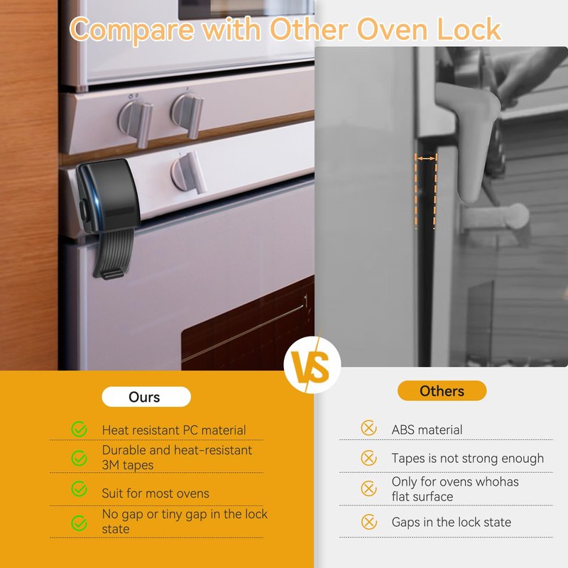 - [High-Quality Material]: Baby-proofing oven lock is made of heat-resistant PC material, it is durable and safe. You don't need to worry about the lock being damaged by high temperatures. The updated oven lock has increased the area of the tape and made it stick more firmly.