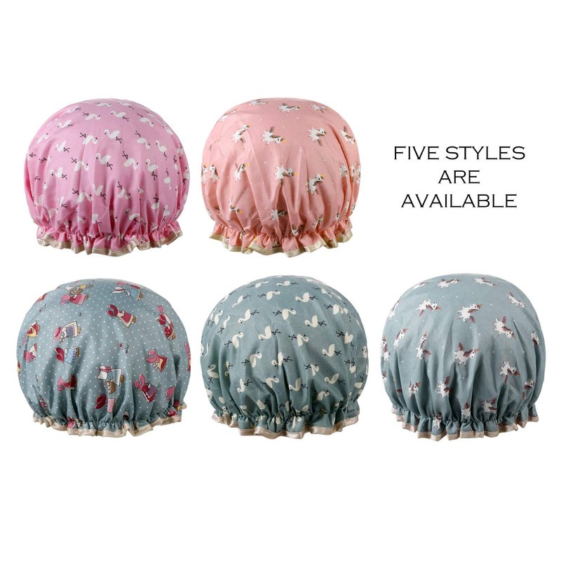 - 🛀【Double Layers Waterproof】The outer layer of this shower cap for women is made of high-grade polyester cotton, soft waterproof inner layer adopts eco-friendly PEVA material. The elasticity of the large cap is just right, and the leak-proof design keeps the hair firm during shower or dressing.