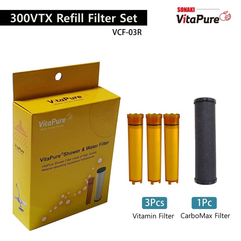 VTX-03R Refill Shower Filter Cartridges for VitaMax Combo SUF-300VTX, 1 CarboMax & 3 Vitamin C filters