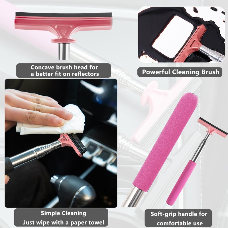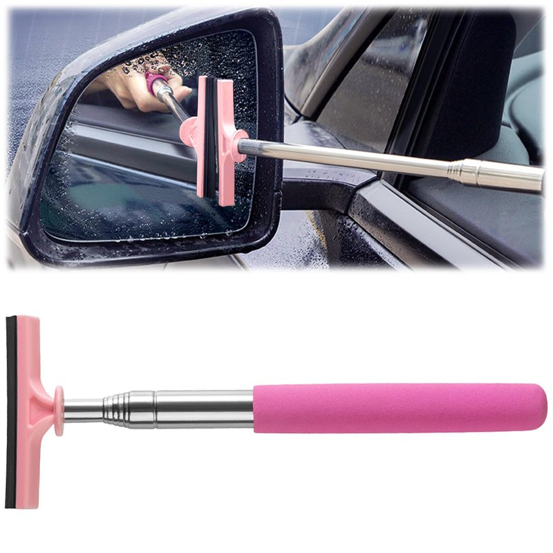 vvag Car Rearview Mirror Wiper, 8cm Brush head-98cm Telescopic Auto Mirror Squeegee, Water Cleaner with Telescopic Long Rod, Universal Automotive Accessories (Pink)