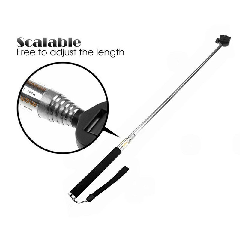 - 【Application 1】: The extendable Selfie Stick Monopod + Tripod mount adapter + Long Screw. It can work with all compact point and digital cameras that has self-timer and tripod. Adjustable Ball-head allow you to easily adjust angle, extends your reach when taking photos