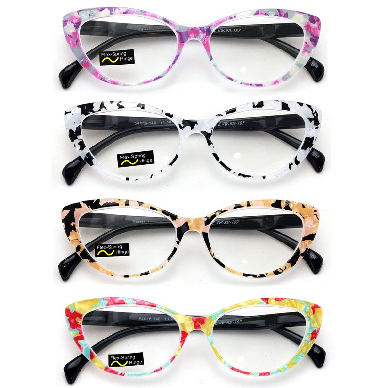 - 4 Pairs of Fashion Cateye Reading Glasses With Spring Hinges. Readers for people who loves fashion.