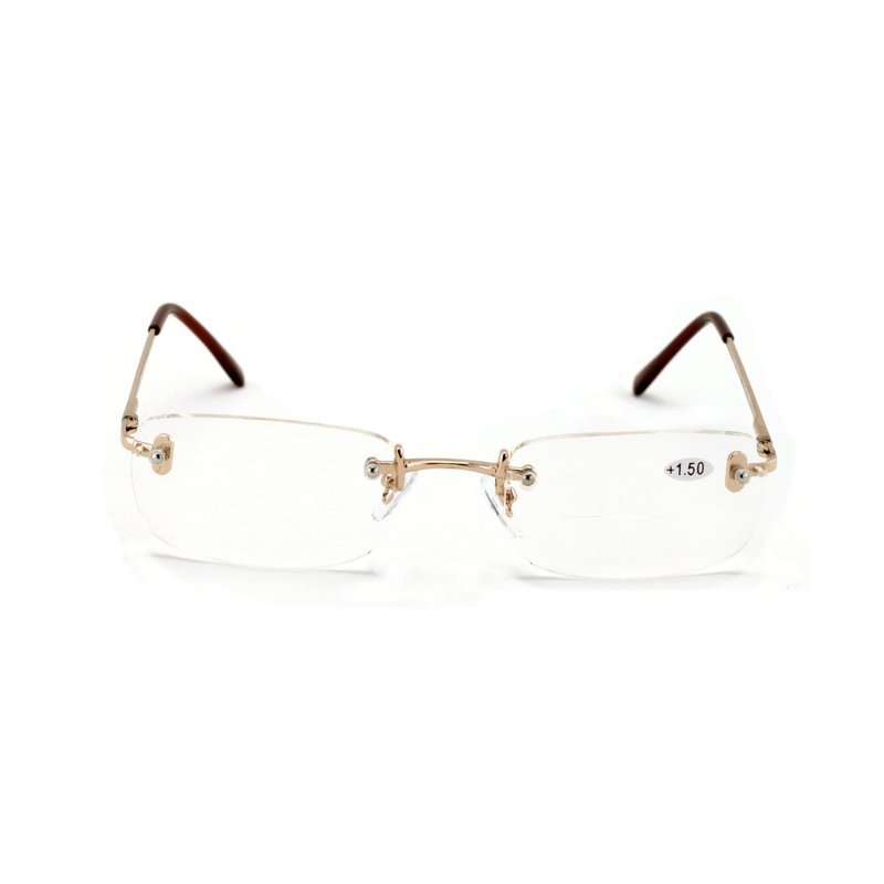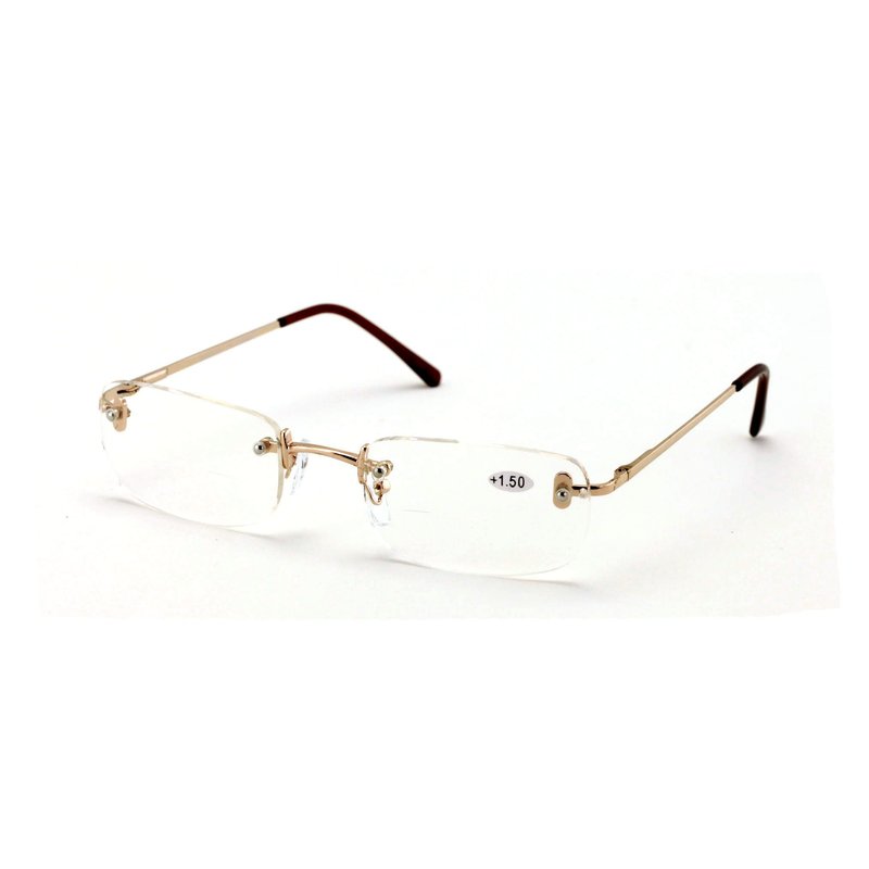 Rectangular Rimless Design Bifocal Reading Glasses. High quality spherical lenses provide superb optical clarity. Passed FDA inspection with impact resistance lenses and guaranteed to absorb more than 99% of harmful UVA and UVB rays.