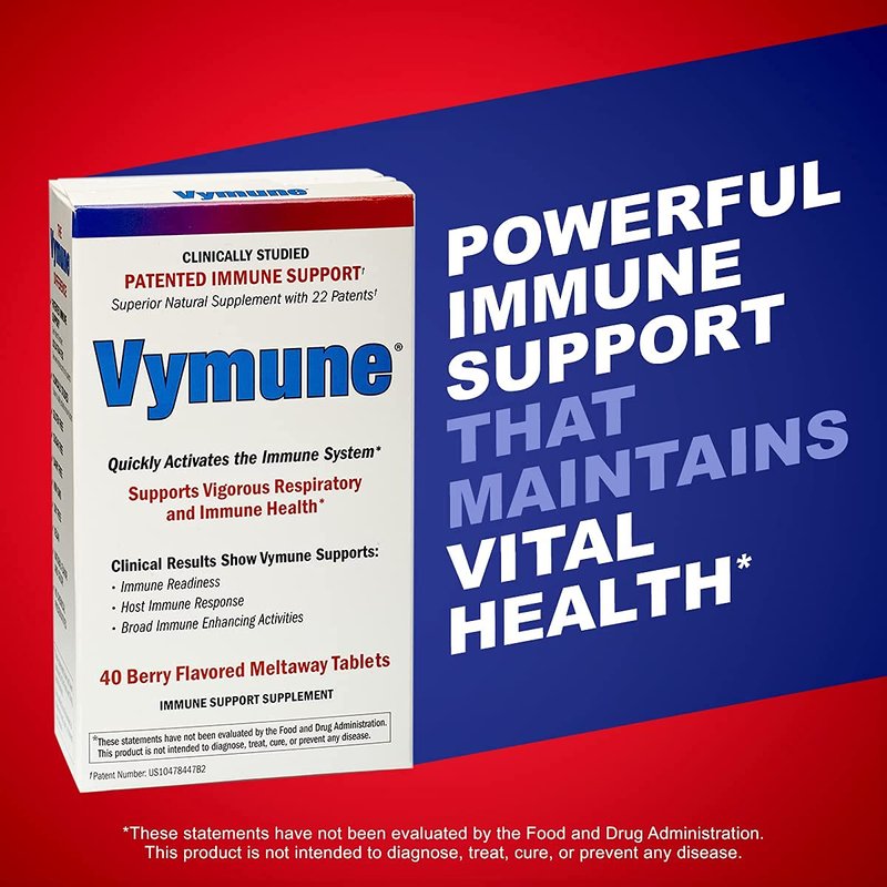 - One box of Vymune includes 40 convenient, and easy to use quick meltaway tablets in a natural berry flavor. No artificial flavors. Made in the USA.