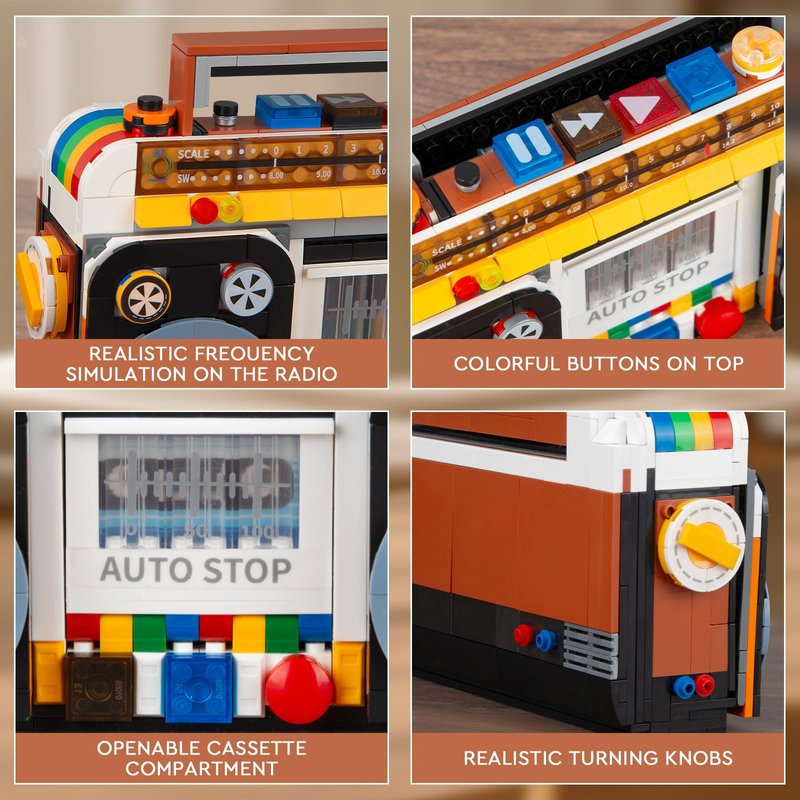 - 【Authentic Look and Craftsmanship】This set has a realistic look and exquisite detailing, a replica of the original equipment. It has a liftable antenna, lifelike buttons, and flip-open speakers that. As you build, you won't miss a single detail of those cherished memories