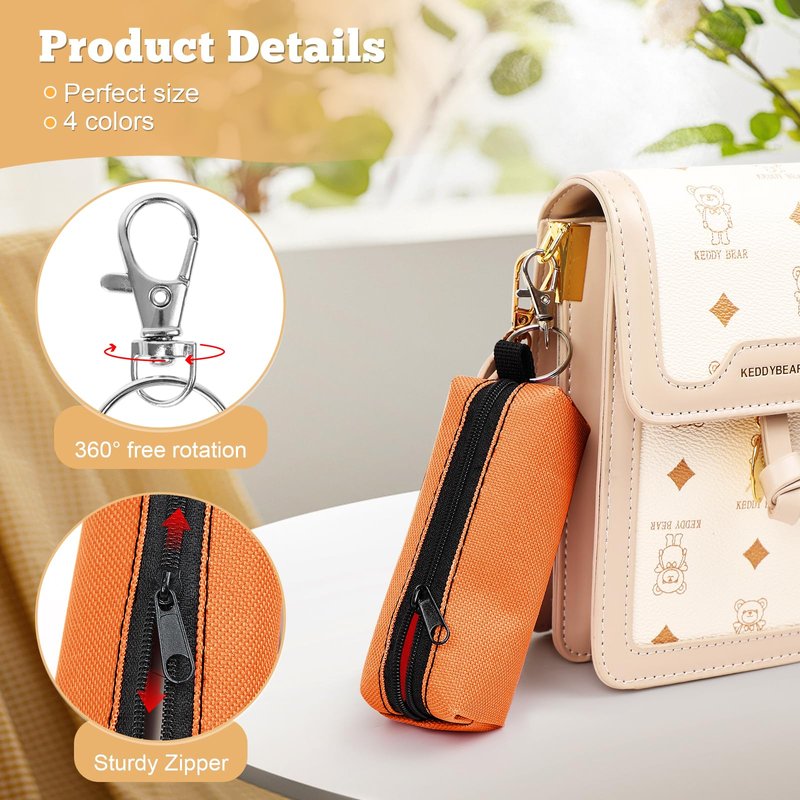 - Excellent quality and design:Made of high-quality oxford cloth, durable,with metal hooks, light and easy to carry, can be used for backpacks, handbags and keychains,zipper opening design, easy to use, and more to prevent your favourite lipsticks or lip balms from losing again