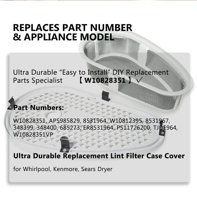 - 【Part Numbers】 W10828351 Dryer lint trap catcher Includes 1 x W10828351 Dryer lint filter and 1 x lint cover .Used quality material and durable ABS frame construction and well-tested by the manufacturer,meets OEM standards.