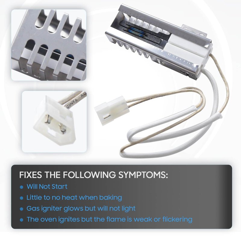 - MODEL NUMBER: W10918546 Gas Oven Igniter. This flat style gas oven igniter has ceramic housing and comes with a connector. It is responsible for igniting the gas flame in the oven, which is necessary for the oven to operate.