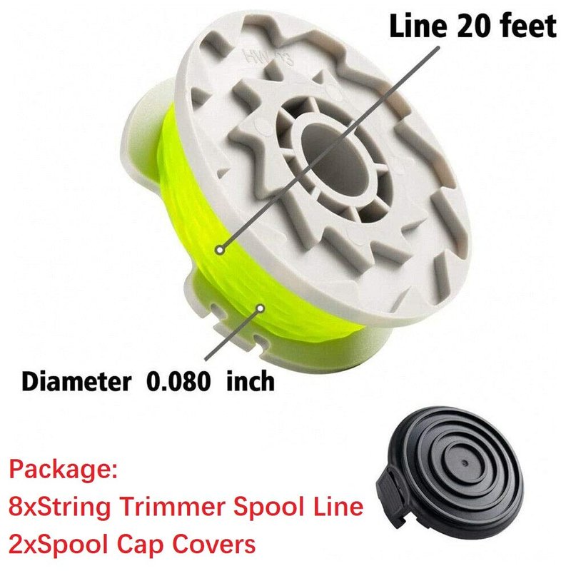 WA0014 Trimmer Line Replacement Spools for Worx WA0014 Grass Trimmer ,Weed Eater String Edger Spool Line Refills Parts-WG168 WG184 WG190 WG191 Auto-Feed 20ft 0.080" with WA0037 Cap Covers 8 Pack