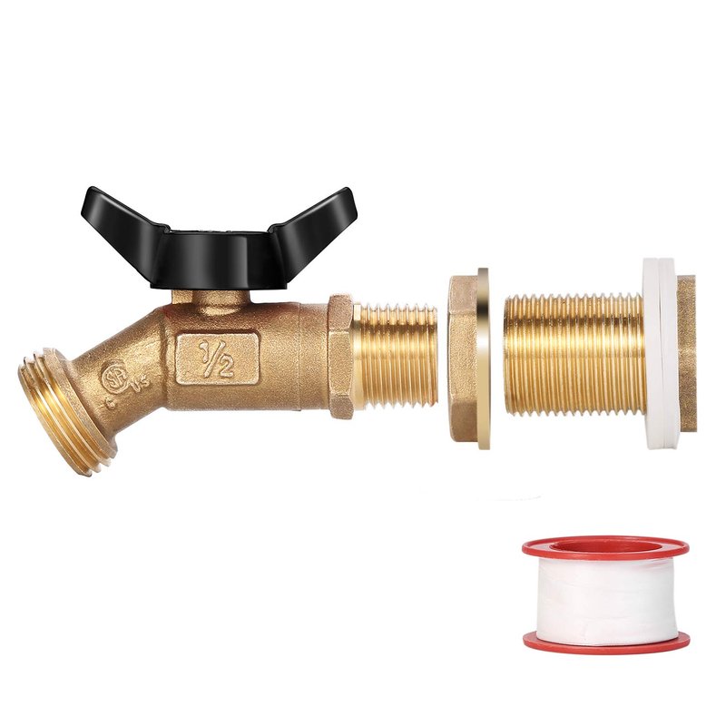 WADEO Brass Rain Barrel Spigot, Rain Barrel Quarter Turn Ball Valve Spigot with Bulkhead Fitting