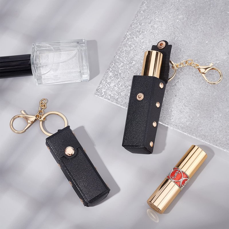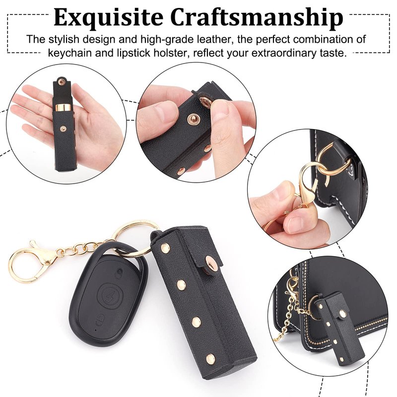 - Ideal Gift: This PU leather lipstick keychain holder is fastened with rivets, golden rivets and black leather, classic and fashionable, suitable as birthday, Christmas, New Year, anniversary gifts for family and friends.