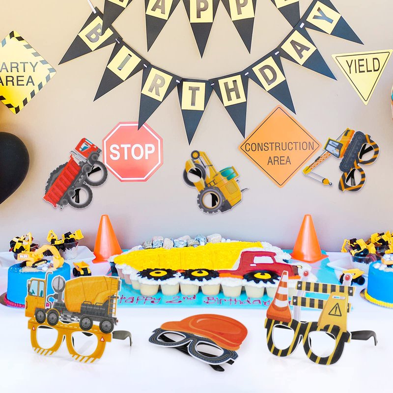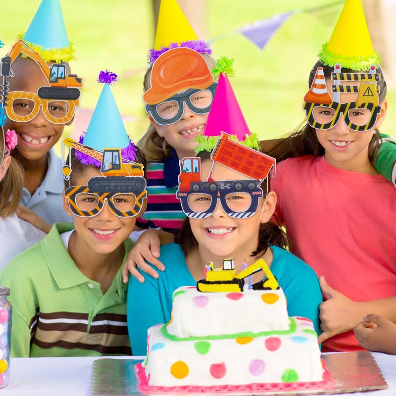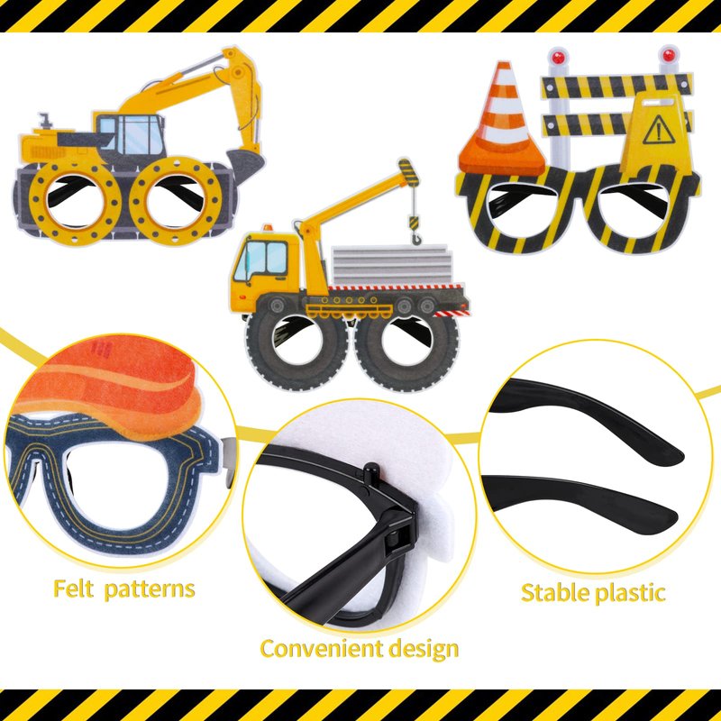- COMPLETE FUN PACK:A complete party glasses set - The whole set of construction birthday party supplies includes 12pcs different styles of construction party glasses frames. The truck birthday party decorations are a great inspiration design, they make excellent party favors for a boy’s B-day construction party