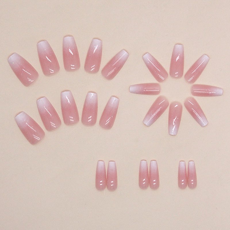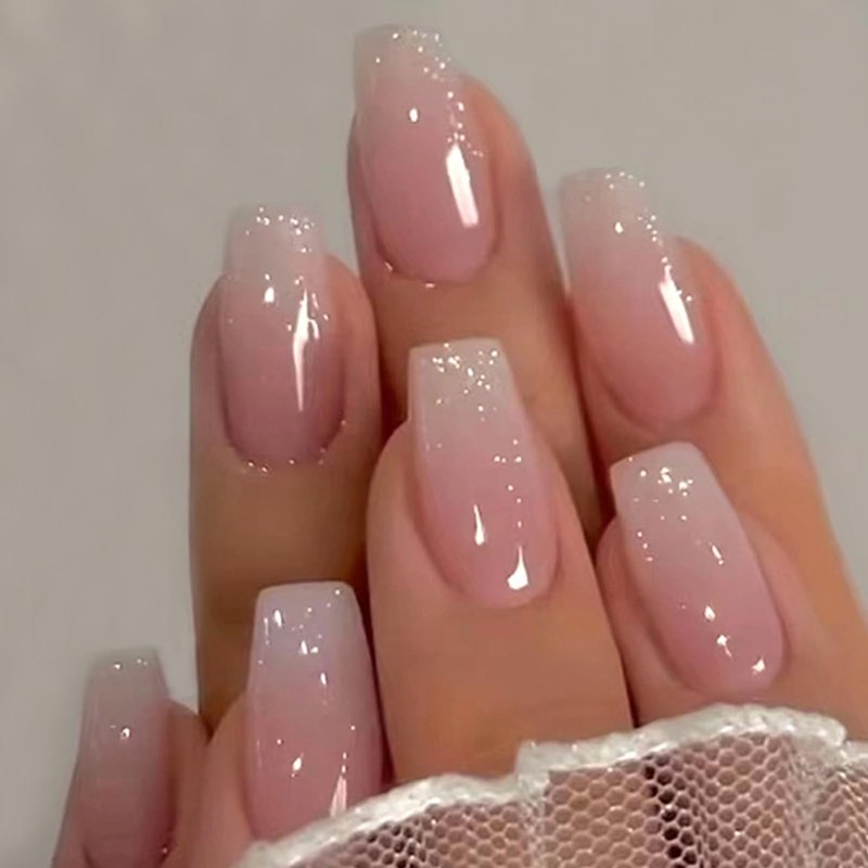 WAFOLOZE Medium Press on Nails, Ombre Pink Nails Press on Square Fake/False Nails with Glitter Powder Press ons Designs Gloss Acrylic Artificial Nails Stick on Nails for Women 24pcs