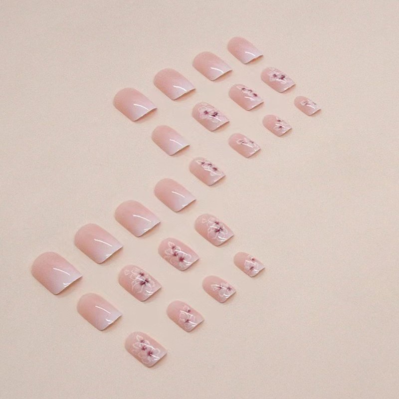WAFOLOZE Nails Press ons,White Ombre Short Square Press on Nails Fake/False Nails with Flower Press ons Designs Gloss Acrylic Artificial Nails Stick on Nails for Women 24Pcs