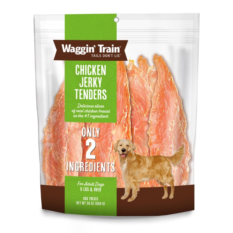 - Contains Only 2 Ingredients: Your dog will be wagging its tail with joy at the taste of Waggin' Train chicken jerky dog treats! They're made with only two simple ingredients, chicken breast and vegetable glycerin, and perfect for any size dog