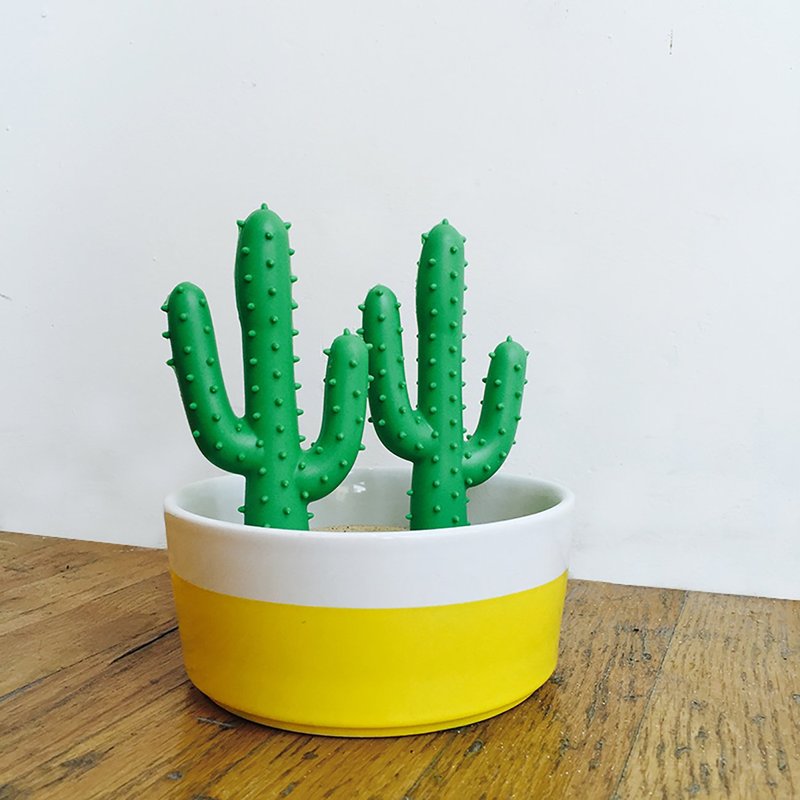 Let's get silly this Summer with Waggo's Silly Succulent Cactus Dog Toy. Perfect for your nature loving dog, our durable rubber cactus toy will stand up to hours of fun, it even floats in water! Non-Toxic Rubber, Meets US Child Safety Standards. Floats in water. One Size: 7" x 3"