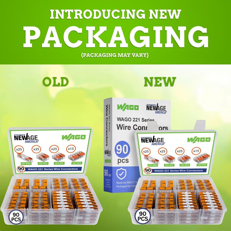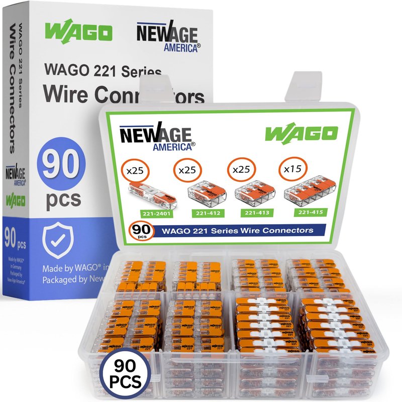 WAGO 221 Series 90pc Lever Nuts | Includes (25x 221-2401), (25x 221-412), (25x 221-413), (15x 221-415) | Compact Splicing Wire Connectors Assortment Pack | 221 Series Assortment with Case