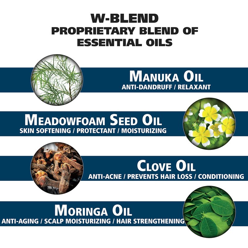 - The Wahl Blend - W blend uses high quality ingredients, like meadowfoam seed oil, manuka oil, clove oil, and moringa oil, that help you not only smell great, but feel great too