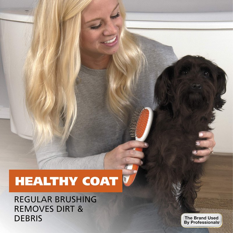 - Double Sided Design – Soft bristles are used to smooth and shine the coat while the stainless-steel pins are used to remove deep lower level fur that normal bristles miss