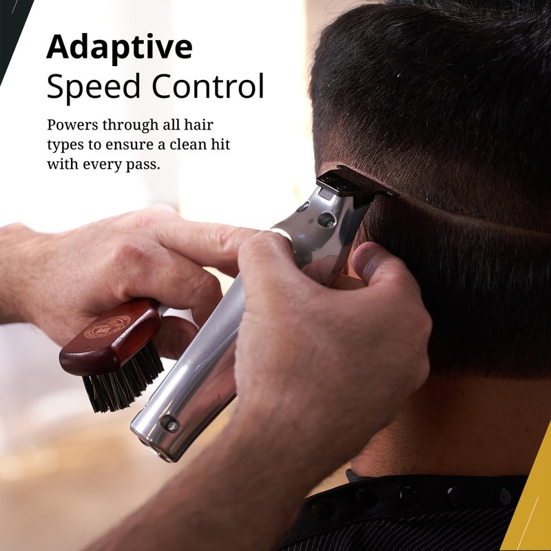 The Wahl Professional Hi-Viz Trimmer is engineered for barbers and stylists who demand precision and control. Featuring a slim neck design, this trimmer enhances visibility, allowing for perfect lines and intricate designs. The Adaptive Speed Control motor ensures clean hits through all hair types by automatically adjusting the speed up to 7200 RPMs. The re-designed wide T-blade with diamond-like carbon (DLC) coatings remains sharp eight times longer than stainless steel blades and stays cool during use. With zero-gap capabilities, this trimmer provides high-end, skin-close results. The all-metal, well-balanced body with ComfortCurve design makes long grooming sessions more comfortable. Enjoy 135 minutes of run time on a 45-minute charge, powered by a weighted charging stand, 5V cable, or standard USB-C. Hand tested and assembled with care at Wahl in Sterling, IL, the Hi-Viz Trimmer embodies top-tier performance and reliability.