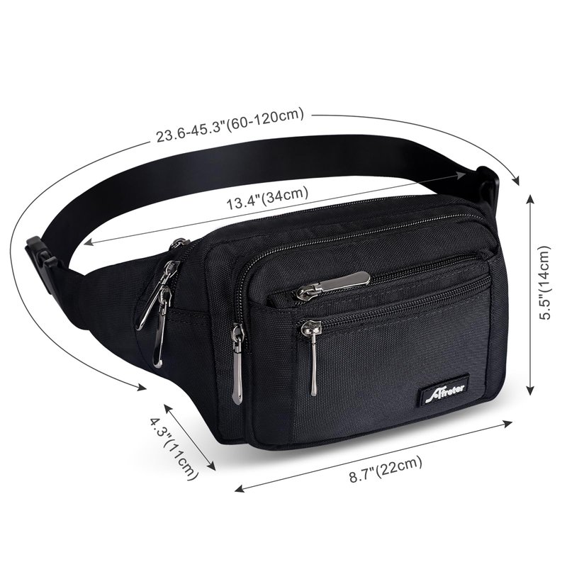 - 【6 MULTI-POCKET DESIGN】Our fanny packs for men & women will keep your hands & pockets free! 5 zipper pockets of different sizes and a hidden zipper pocket design, hidden zip perfect give your valuables extra security, all your needs. The largest pocket can easily accommodate a standard water bottle. A zippered exterior pocket located behind the waist band with Rain Cover it can better protect important items in rainy days.