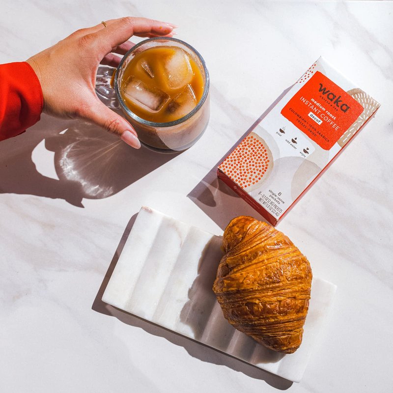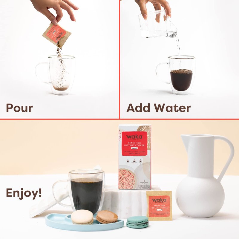 Waka Quality Instant Coffee — Decaffeinated Medium Roast — Arabica Beans & Freeze Dried — 8 Packets for Hot or Iced Premium Instant Coffee