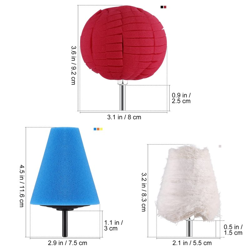 - 【PREMIUM QUALITY】- The cone buffing pad is made of high-quality sponge material and is durable. 5 different colors and shapes of pads can be used for different polishing or waxing work.