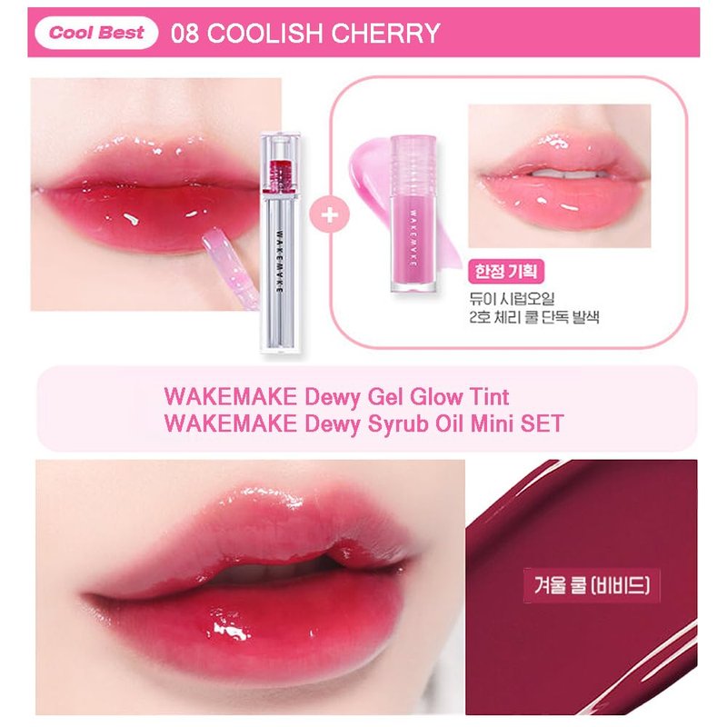 - Wakemake Dewy Gel Glow Tint [08 Coolish Cherry] 3.0g, Wakemake Dewy Syrub Oil Mini Set 1.8g (Set of 2) / Made In Korean