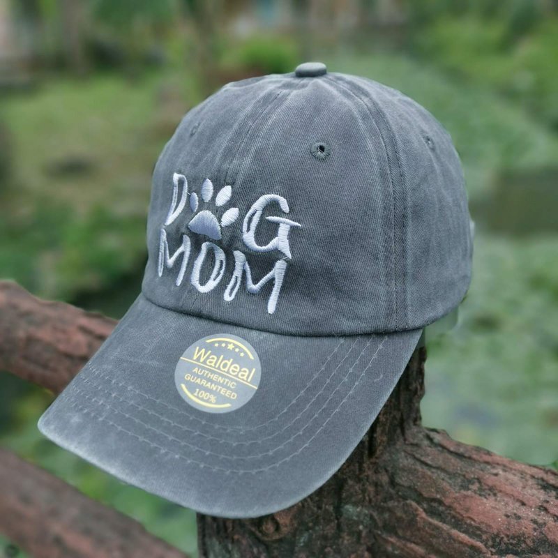 Waldeal Women's Adjustable Embroidered Dog Mom Hat Denim Baseball Cap Puppy Owner Gift Grey